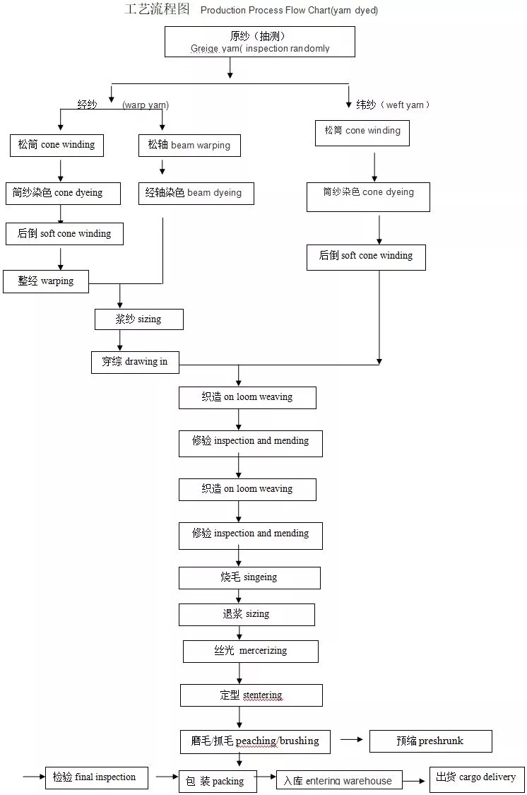 色織布生產(chǎn)流程按經(jīng)紗染色方式分為筒染和軸染兩種。無論單量大小,均可使用筒染方式,但其流程較長,對成本的控制也帶來一些不便。軸染方式流程較短,對經(jīng)紗的損耗小,布面顏色控制較好,根據(jù)我公司目前的設備配置,適合于2000米以上的單量品種染色。?