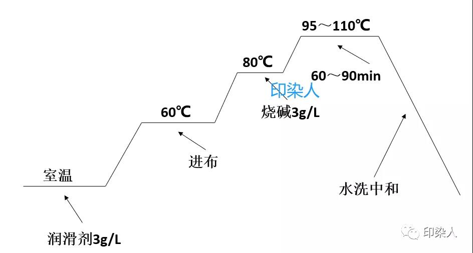(堿處理的目的是打開纖維無定形區(qū)分子鏈間的氫鍵,使纖維充分膨化,降低織物僵硬程度,減少折皺和提高其染色性能,可采用退、漂堿三合一前處理工藝)。