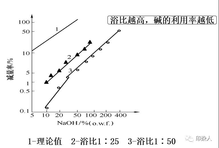 當(dāng)減量時的浴比增大,堿液的濃度降低,堿量率下降,但堿對滌綸作用的均勻性提高,從而使堿量均勻。