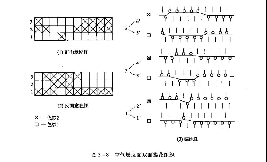 復(fù)合組織是由兩種或兩種以上的織物組織復(fù)合而成。它可以由不同的基本組織、不同的變化組織、不同的花色組織復(fù)合而成。復(fù)合組織可以根據(jù)各種組織的特性復(fù)合成所要求的組織結(jié)構(gòu)。羅紋組織與平針組織復(fù)合成羅紋空氣層組織,雙羅紋組織和平針組織復(fù)合而成雙羅紋空氣層組織。這類組織的織物緊密厚實,彈性好,保暖性好橫向延伸性較小,尺寸穩(wěn)定性較好。若空氣層組織外層采用棉紗編織,內(nèi)襯高彈絲,是保暖內(nèi)衣的極好面料;若正反面采用不同類型的紗線編織,則尤其適合用作外衣面科。
