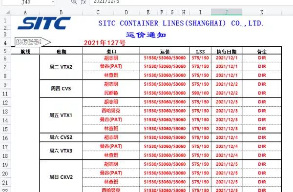 以華南到胡志明港為例,從十月底到十二月初,前后一個月時間,一個40尺集裝箱海運費就從500美金左右暴漲到了2000至2500美金,最高漲幅高達5倍。目前從船公司拿到的一手運價中,國內到東南亞國家航運價格上漲了500至1000美元不等,與前兩周相比漲幅達80%至200%不等,其中20GP/40GP/40HQ柜子運價分別為1530美元、3060美元、3060美元。要知道,疫情前東南亞的運費僅有200-300美元左右。