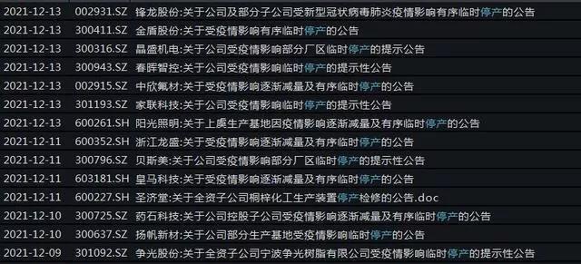 多個(gè)地區(qū)緊急叫停全區(qū)所有工業(yè)企業(yè),對于石化、?;瘜ζ髽I(yè)的開工做出限制,隨后浙江龍盛、皇馬科技、貝斯美等十幾家上市公司發(fā)布臨時(shí)停產(chǎn)公告,并預(yù)計(jì)將給企業(yè)的經(jīng)營業(yè)績帶來不利影響。