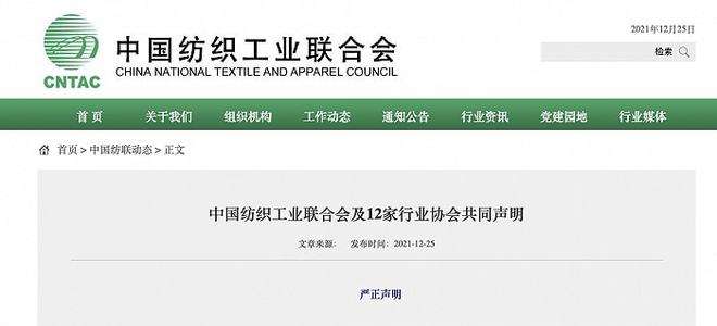 12月23日(美國當?shù)貢r間),拜登政府簽署美國參眾兩院通過的排除新疆產(chǎn)品進入美國市場的所謂“H.R.6256涉疆法案”,嚴重、粗暴損害中國整體利益,引發(fā)中國社會、紡織產(chǎn)業(yè)界和消費者的極大憤慨。對此,中國紡織工業(yè)聯(lián)合會及中國紡織全產(chǎn)業(yè)鏈12家行業(yè)協(xié)會共同聲明如下