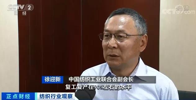 中國紡織工業(yè)聯(lián)合會副會長 徐迎新:我們國家的紡織服裝行業(yè)復(fù)工復(fù)產(chǎn)在90%左右的水平,很多都是處在滿負(fù)荷運(yùn)營的狀態(tài)。