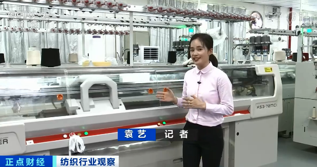 這是一臺生產(chǎn)毛織服飾的一體機(jī),簡單來說它就是由一根紗直接就編織成了一件完整的毛衣,而傳統(tǒng)的機(jī)器它生產(chǎn)出來的是單片,比如說袖子或者是領(lǐng)口,它需要人工一針一線進(jìn)行縫合,在袖口和衣身的連接處有明顯的縫合。而一體機(jī)生產(chǎn)出來的毛衣在這個位置非常平整,所以穿起來也會更加舒適,而生產(chǎn)這樣的一件毛衣,一體機(jī)只需要一個小時左右的時間,在這個生產(chǎn)車間里面大概有30臺一體機(jī),僅僅只需要兩個工人。