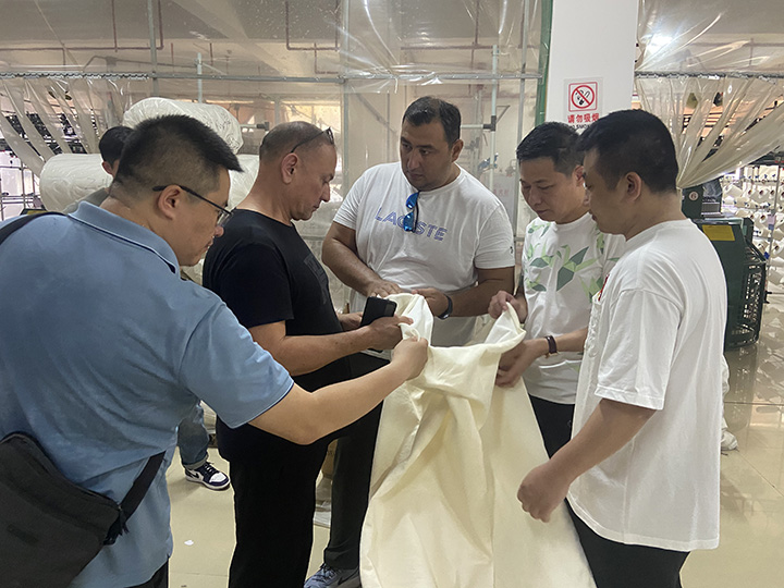 近日,來自海外的客戶應(yīng)邀到漢馬大圓機生產(chǎn)車間進行實地考察,公司負責人高海彬、王偉明等人熱情接待遠道而來的客人。