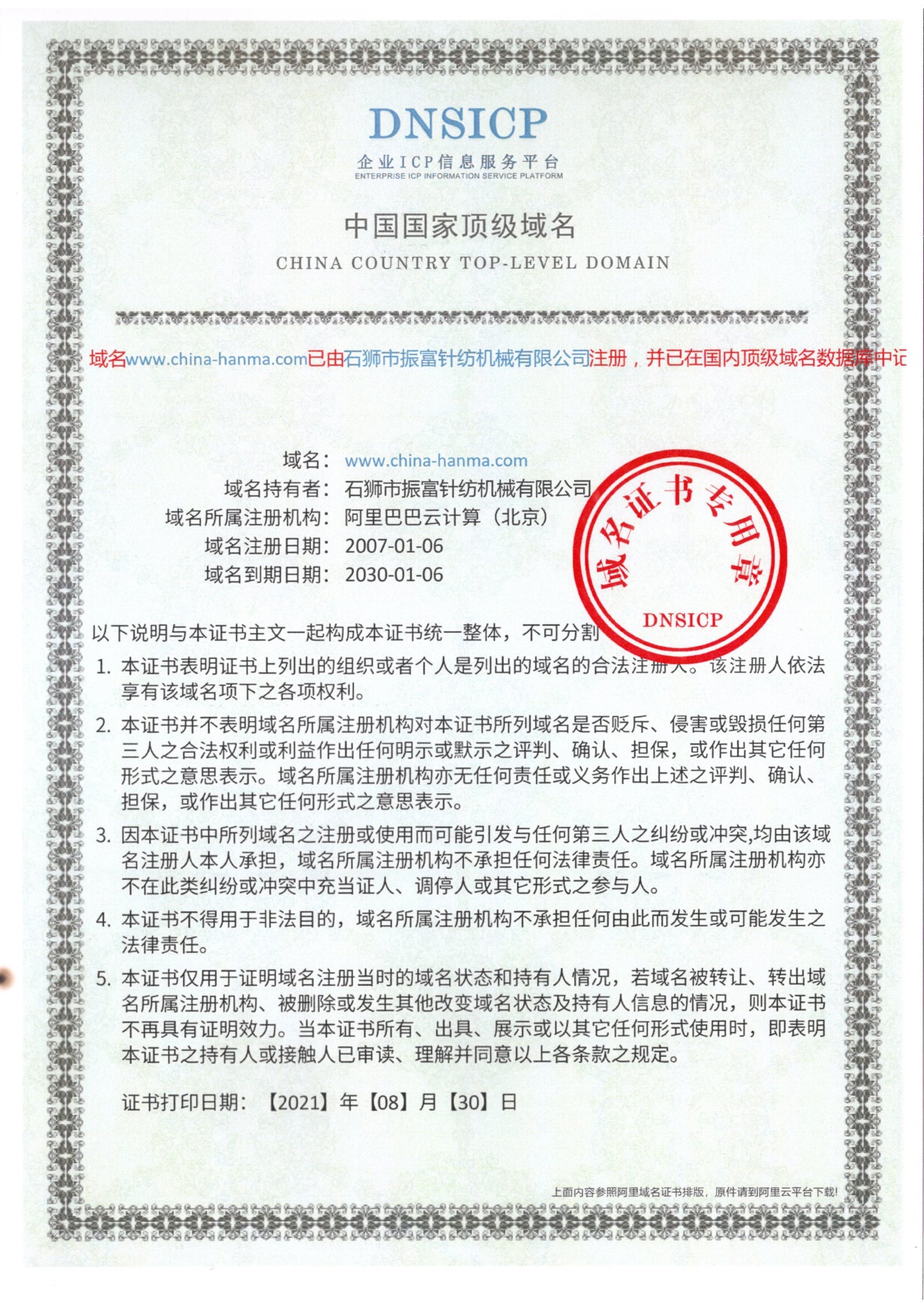 域名m.residentialcarect.com 已由石獅市振富針紡機械有限公司注冊,并已在國內(nèi)頂級域名數(shù)據(jù)庫中記錄