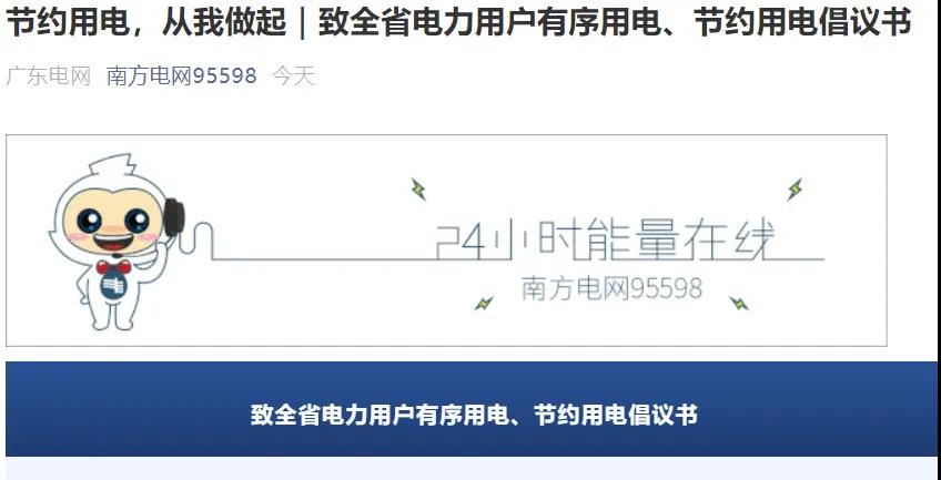 9月26日,廣東省能源局和廣東電網(wǎng)有限責(zé)任公司聯(lián)合發(fā)布《致全省電力用戶有序用電、節(jié)約用電倡議書》。倡議全省工、商業(yè)企業(yè)