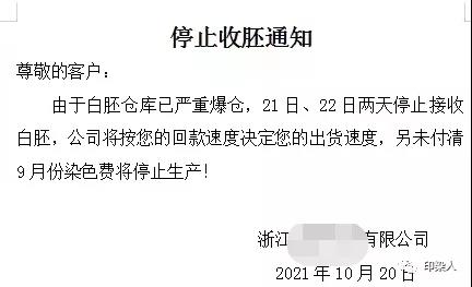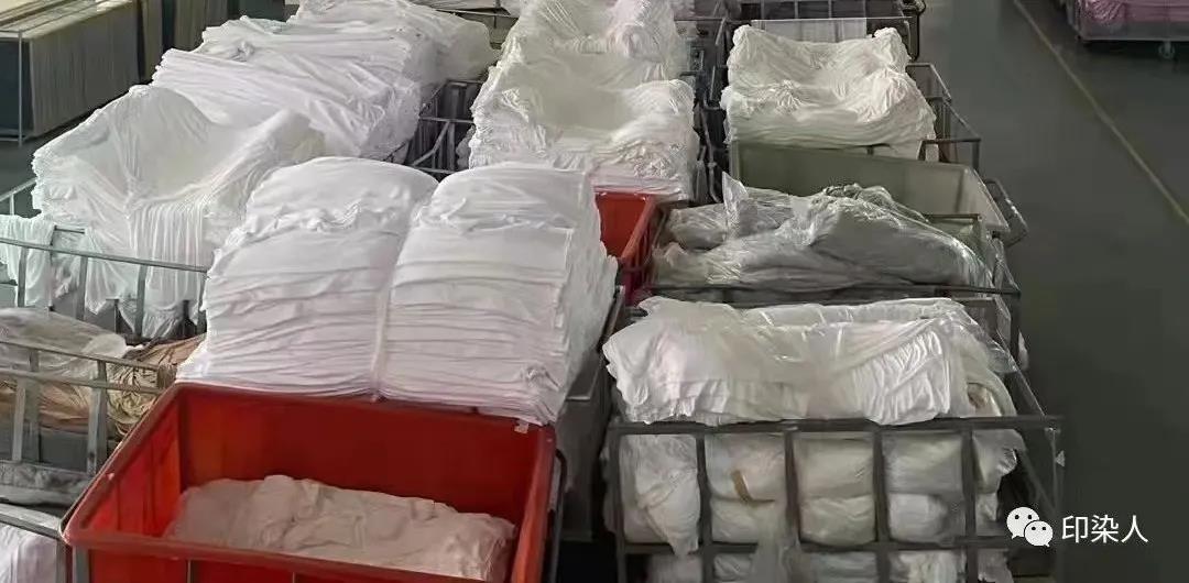 即使目前染廠不再限產(chǎn),但產(chǎn)能上升也需要過程,并且前期擠壓的訂單一時間也難以快速釋放,因此短期內(nèi)限產(chǎn)結(jié)束也未能完全改善擁擠的狀態(tài)。如今的印染廠爆倉嚴(yán)重,坯布堆至馬路上,生產(chǎn)被壓卡,排隊染色,交期長達20多天。