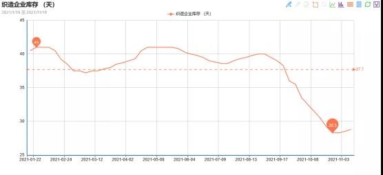 終端紡織市場(chǎng)隨著購(gòu)物節(jié)熱度的過(guò)去,“圣誕節(jié)”、“雙十二”的訂單也已基本制作完畢,目前新訂單偏少,而這些訂單又恰逢限電限產(chǎn)的風(fēng)頭,社會(huì)庫(kù)存大幅去化,目前根據(jù)綢都網(wǎng)的數(shù)據(jù)監(jiān)測(cè),織造企業(yè)坯布庫(kù)存整體在28.8%左右。庫(kù)存的去化,本應(yīng)讓市場(chǎng)上坯布價(jià)格得到上升,而現(xiàn)在坯布價(jià)格卻在慢慢跌下來(lái),其原因還是由于目前行情不是太過(guò)積極。