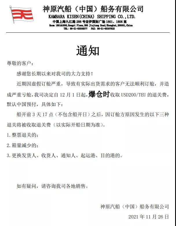 其他船公司征收情況請詳詢對應船公司。收取虧艙費,在未來可能也是趨勢,成為硬性成本,所以請拿到艙位的朋友們務必珍惜!