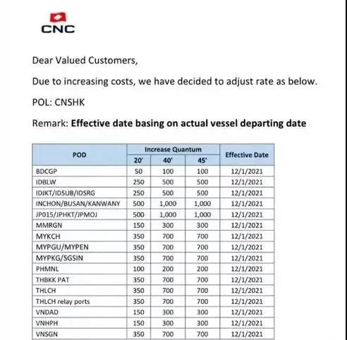 從一些東南亞船公司的最新漲價(jià)通知來看,漲幅確實(shí)不小。蛇口港至泰國曼谷、林查班港,漲價(jià)USD350/700/700;蛇口至仁川釜山等港口,直接漲價(jià)USD500/1000/1000。